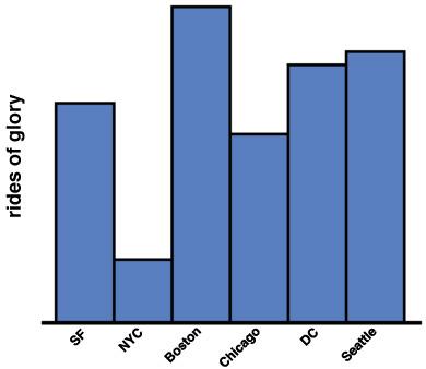 Then there’s the data-harvesting side of the business. An intriguing insight into this could be found in a post that appeared on the company blog on 26 March 2012 under the title “Rides of Glory”. “Recently,” wrote the author, “I have come to understand that some of you may have on occasion found love that you might immediately regret upon waking up the morning after. In times of yore you would have woken up in a panic, scrambling in the dark, trying to find your fur coat or velvet smoking jacket. Then that long walk home. But that was then. One of the neat things we can do with our data is discover rider patterns: are there weekend riders that only use Uber post-party? It was while playing around with this idea of (blind!) rider segmentation that we came up with the Ride of Glory (RoG). A RoGer is anyone who took a ride between 10pm and 4am on a Friday or Saturday night, and then took a second ride from within 1/10th of a mile of the previous night’s drop-off point 4-6 hours later (enough for a quick night’s sleep).”