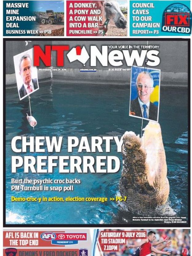 The NT News claims that crocodiles have an unblemished record when it comes to picking prime ministers