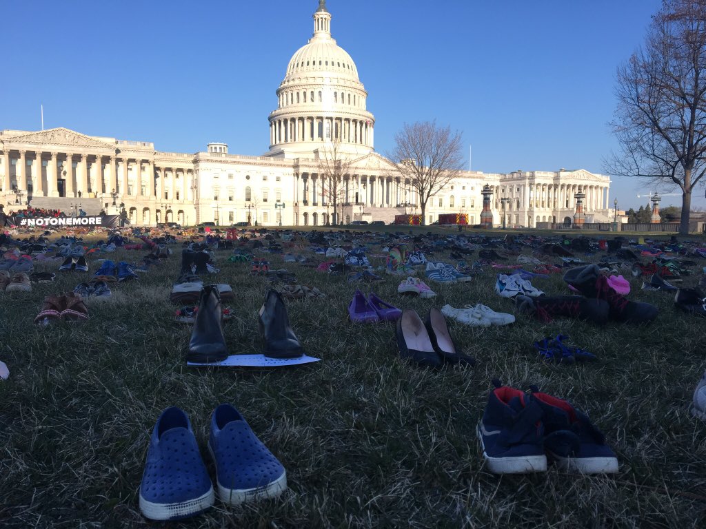 The group said in a statement that they collected 7,000 pairs of shoes for the memorial to bring “the heartbreak of gun violence to Congress’ doorstep.”
