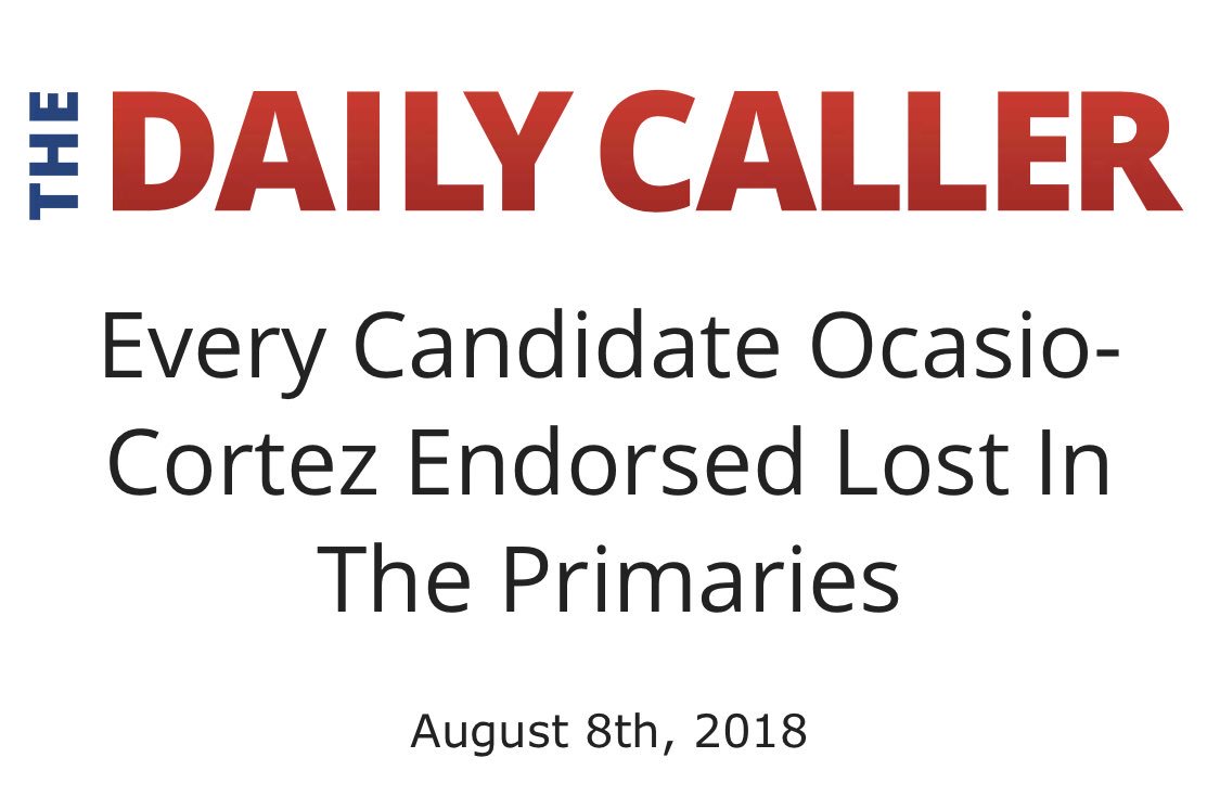 None of the candidates endorsed by Cortez (the Democratic Socialist in NYC) won their primaries. That's a lie conix! You should get a time out for lying. Do you get ALL your news from The Daily Caller? She endorsed these two candidates. Alexandria Ocasio-Cortez @Ocasio2018 GOP can’t handle the truth, so they just make up their own. It’s alright. Denial is the 1st stage of acceptance Stars @RashidaTlaib & @JamesThompsonKS won their races last night! They’re getting 2 new rebellious women in Congress whether they like it or not https://pbs.twimg.com/media/DkFTMqGVsAALjn3.jpg https://twitter.com/Ocasio2018/status/1027193677842669569
