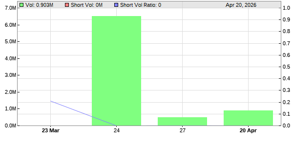 http://www.shortvolume.com/ chart source for the link below, after symbol input toggle timeframe.