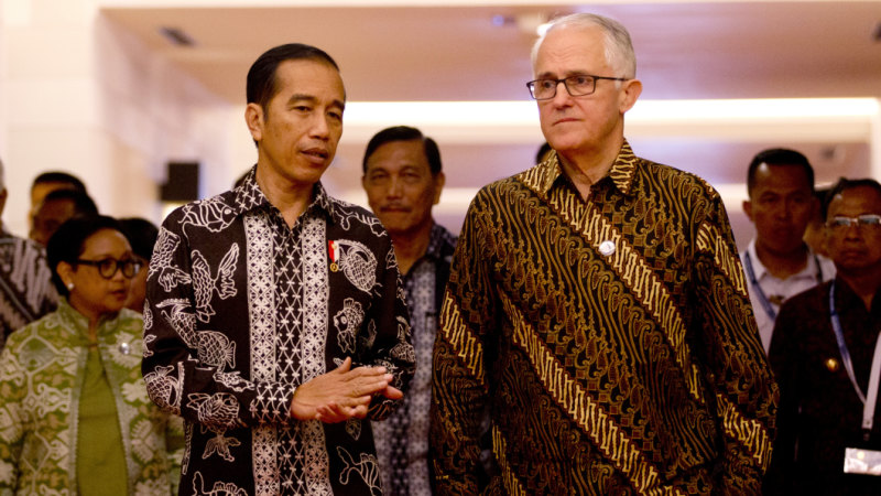 Jokowi and then prime minister Malcolm Turnbull in 2018. Credit:AP