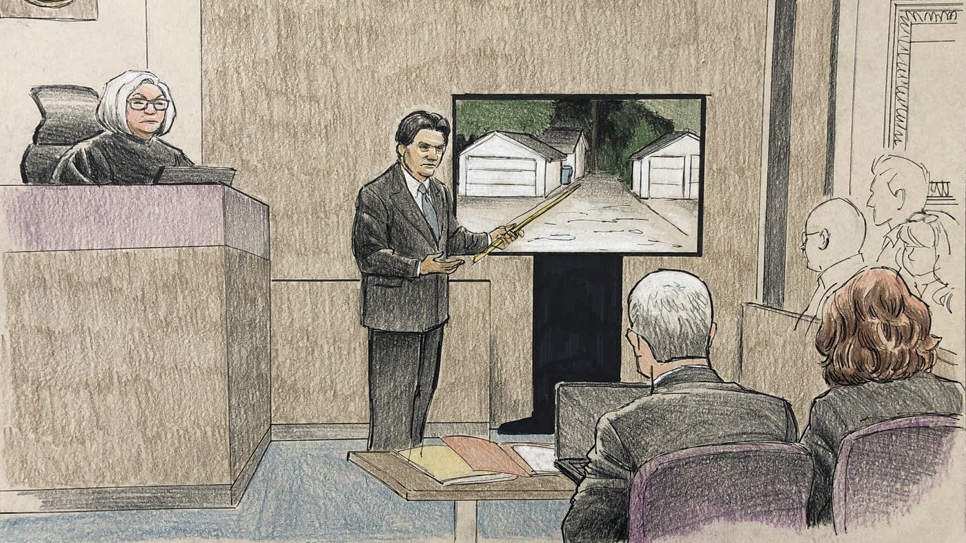 Investigator Adam Castilleja pointed to a photo of the alley where Justine Ruszczyk was killed in July 2017 during the trial last week. Cedric Hohnstadt for MPR News