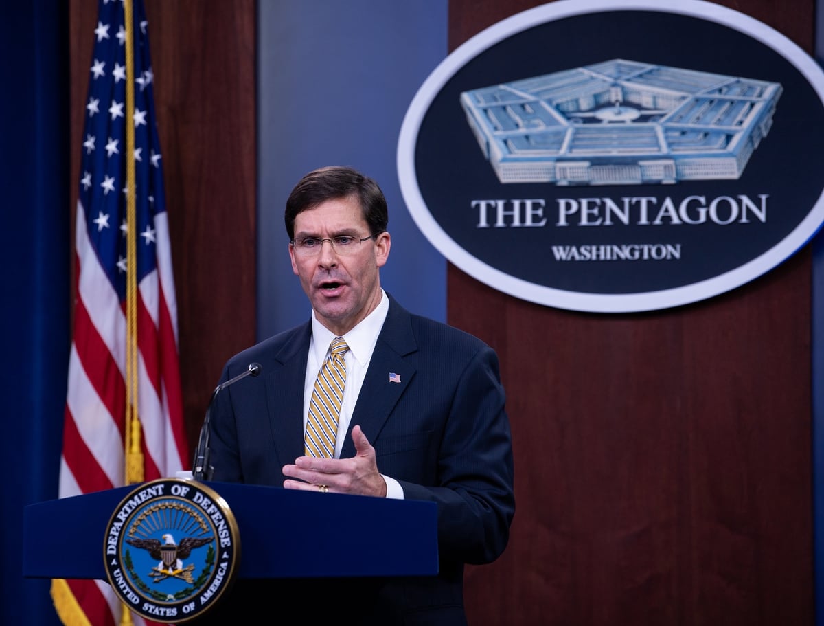 Secretary of Defense Mark Esper speaks to the press during a press conference at the Pentagon Briefing Room in Washington on Jan. 7, 2020. (Army Staff Sgt. Nicole Mejia/DoD)