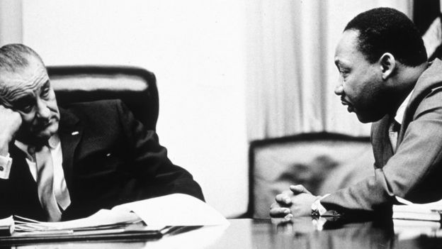 President Johnson with civil rights campaigner Martin Luther King Jr Getty Images