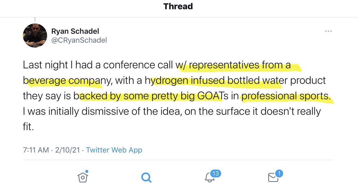 On February 16, 2021, Mr. Schadel announced via twitter, a ZOOM meeting with the beverage acquisition target management.