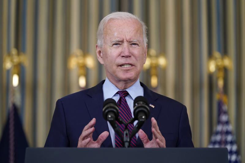 1 of 7 -President Joe Biden delivers remarks on the debt ceiling during an event in the State Dining Room of the White House, Monday, Oct. 4, 2021, in Washington. (AP Photo/Evan Vucci)