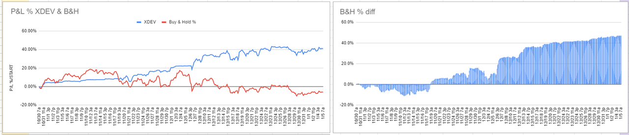 I have a good feel for when an optimization is good enough....or is actually optimal. The data charts at the bottom of the sheet are very useful. Things to look for are a good clean uptrend in the "B&H vs. XDEV chart" and also a good turnover between stock and cash on the Portfolio chart. The ethereum examples below are good examples of this:
