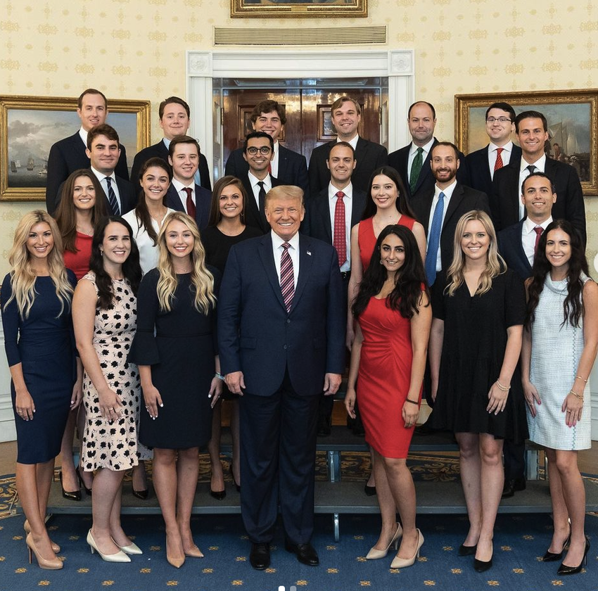 In fact, one McEntee hire was literally a Rockette; she had performed with Radio City Music Hall’s finest in the 2019 Macy’s Thanksgiving Day Parade. The only work experience listed on her résumé besides a White House internship was a stint as a dance instructor. McEntee also hired Instagram influencers. Camryn Kinsey, for example, was 20 and still in college when McEntee gave her the title of external-relations director. In an interview with the online publication The Conservateur, she said, “Only in Trump’s America could I go from working in a gym to working in the White House, because that’s the American dream.” (Kinsey went on to work at the pro-Trump One American News Network.)
