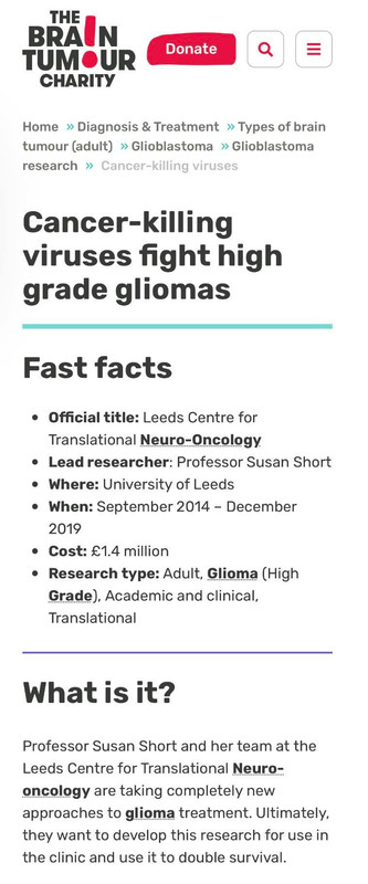 Lead researcher Susan Short got £1.4M by BrainTumorCharity from 2014-2019: