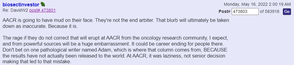 AACR brought Adam Feuersteins hitpiece, but removed it again, having obviously been informed about the untruthfullness of the article.