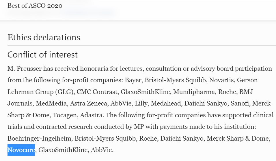 And how is Matthias Preusser related to NovoCure? Does he have any "Conflict of Interest?"