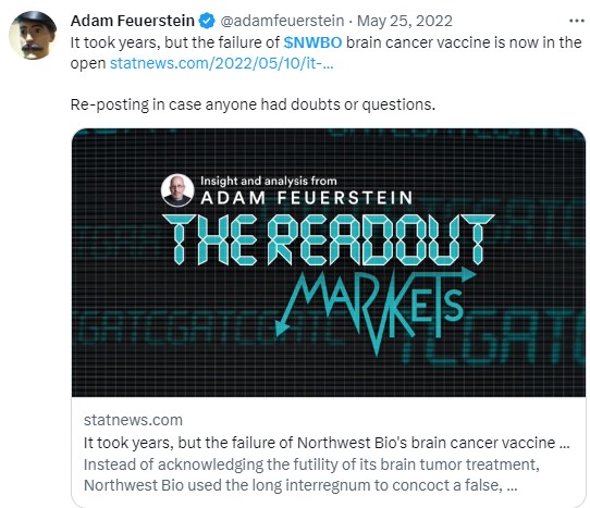 You DO remember, Adam Feuersteins manipulated article, written within the announcement of the P3 results at NYAS May 10th. 2022 ...
