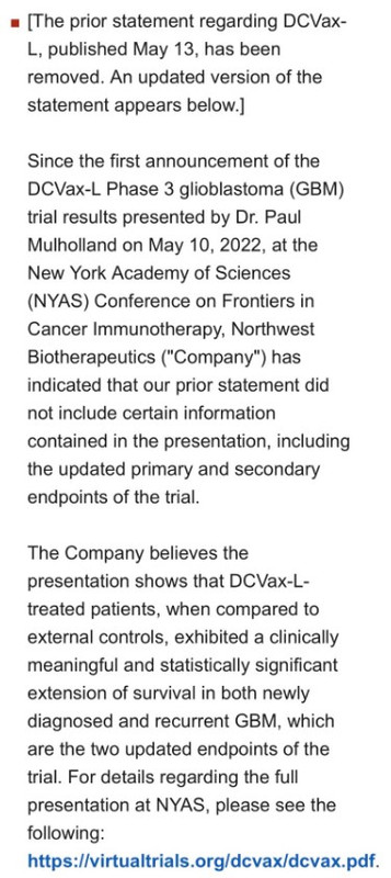 Well, we ALL know THAT is not true, because DCVax-L, had at that time already been used frequently for years in the P3 trial and during compassionate use.