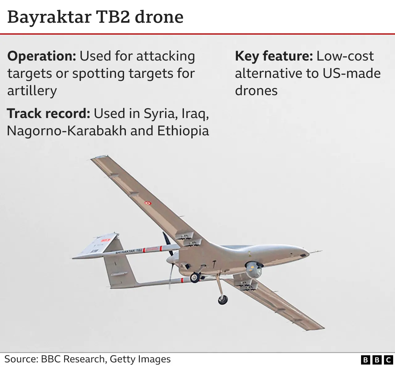 Drones have been deployed by both sides in the conflict, with Russia using Iranian-made drones on targets in Ukraine .. https://www.bbc.co.uk/news/world-62225830 .