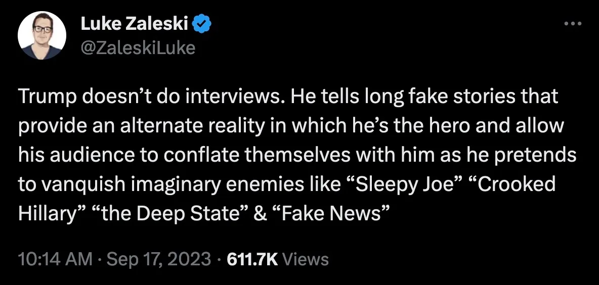 you see, there is no “interviewing” Donald Trump. there is no conversation. there is no question-and-answer, no back-and-forth, no give-and-take.