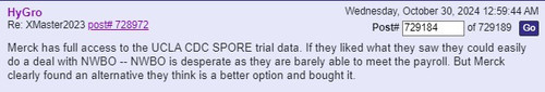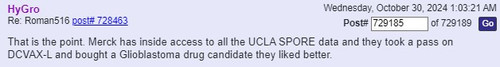 Now the SPORE trial IS with DCVax-L, but a new fud narrative came up, with Merck acquiring another company, so we throw the old fud narrative out, which also made the fudders look pretty idiotic and ignorant anyway, and pick up anything new and try to create some new bullshit :)