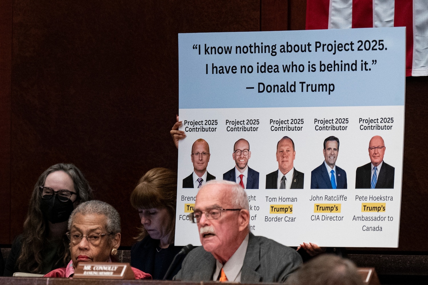 House Oversight and Accountability Committee Ranking Member Rep. Gerry Connolly speaks with Del. Eleanor Holmes Norton, left, during a hearing on "Rightsizing Federal Government," on Capitol Hill, Feb. 5, 2025.