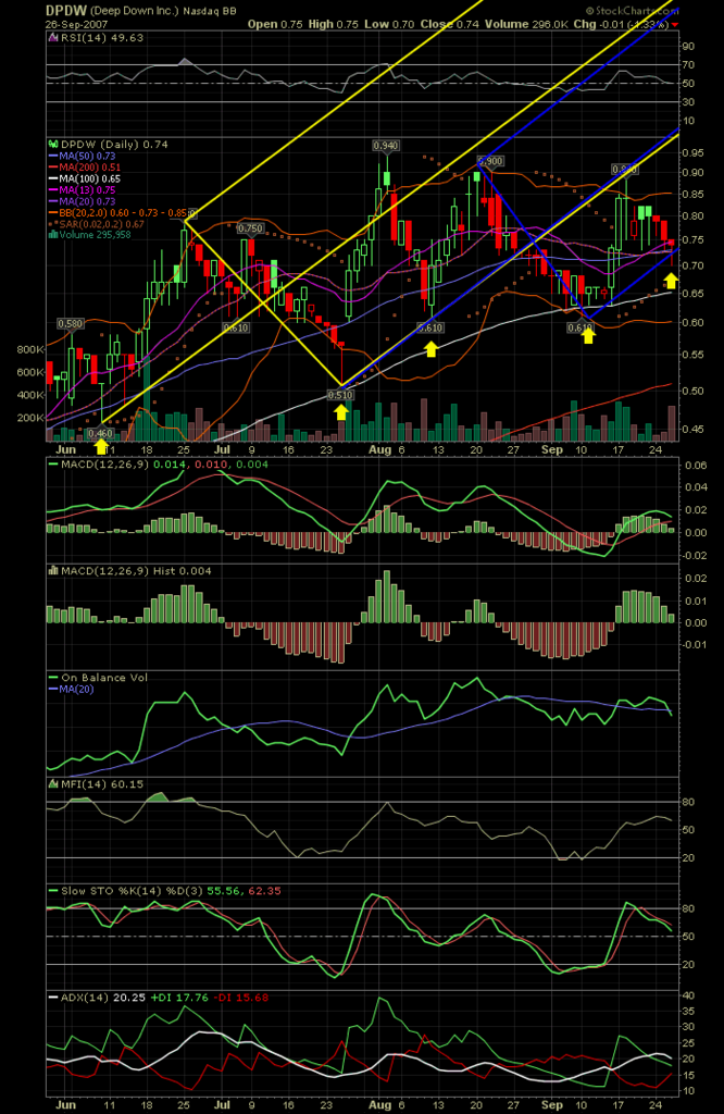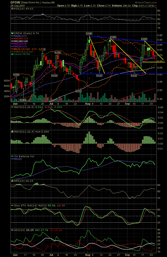 DPDW, I annotated a couple charts for us... Pitch Forks are perfect, the yellow arrows indicate buying opportunities <img src=http://i228.photobucket.com/albums/ee188/dmxbr9/dpdwpitforks.png> Triangle breakout very possible... <img src=http://i228.photobucket.com/albums/ee188/dmxbr9/dpdwtriangles.png>