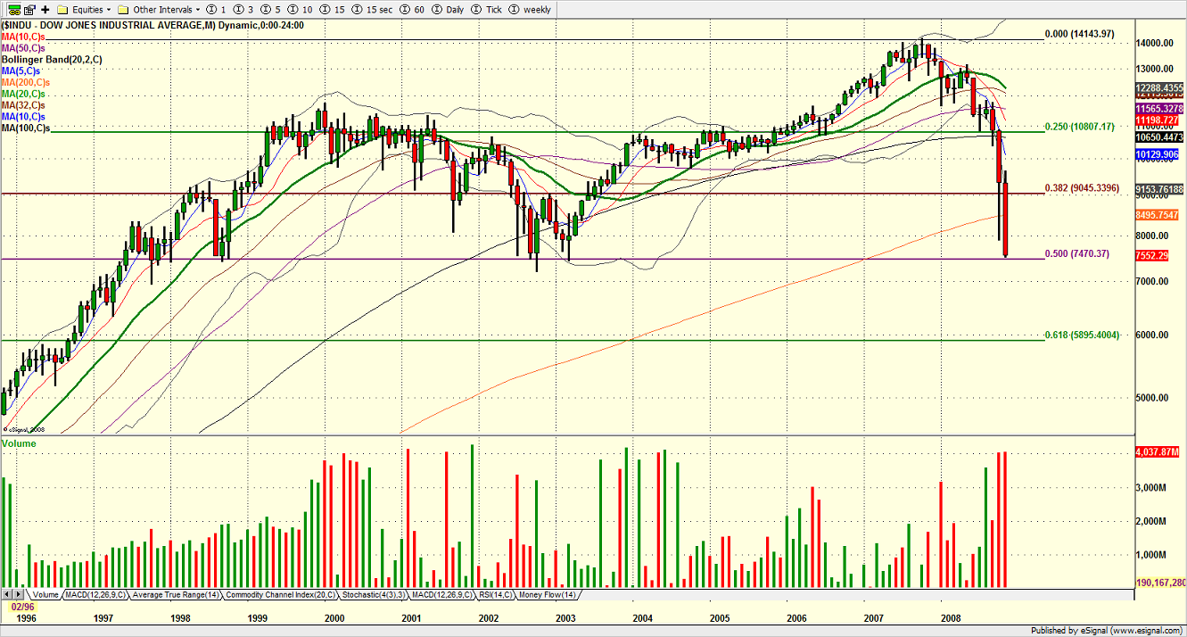 Seems that 50% fib level looks fairly strong, since it incorporates a couple of other lows back in 1998, 2002, and 2003...does anyone think we see some sideways action for a few days?