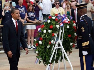 Obama observed another annual presidential tradition [ http://abcnews.go.com/Politics/wireStory?id=7668265 ] with a public wreath-laying ceremony at the Tomb of the Unknown Soldier at Arlington National Cemetery in Virginia.