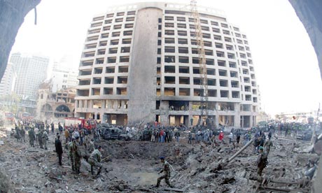 The scene in Beirut after a car bomb exploded in 2005, killing the former Lebanese