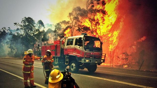 .. shit .. bushfire season has arrived early in Australia this year .. road closures all over the place .. people could not pick up children from schools .. many cannot reach home .. early 'dark' in Sydney as smoke rolls in .. damn .. to all those magnificent professionals fighting the fires, salutes and take care .. to all those inconvenienced .. be patient .. to those who lose homes .. so sorry to see .. many are trapped too late to get out on winding roads .. one fire (from video now) is "twisting and turning" .. 'up and down hills' .. pray no one is killed .. gee, you guys have experienced all of this .. the future is hot .. don't suppose Abbott will reconsider his position on the carbon tax ..