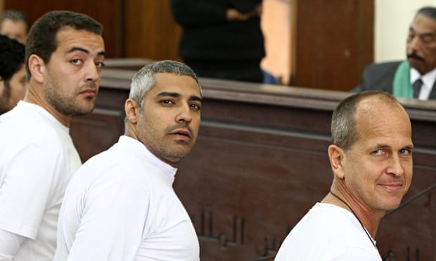 They were arrested while conducting their professional duties, but the court imprisoned them for allegedly spreading lies and distorted the image of Egypt .. http://www.theguardian.com/world/egypt .