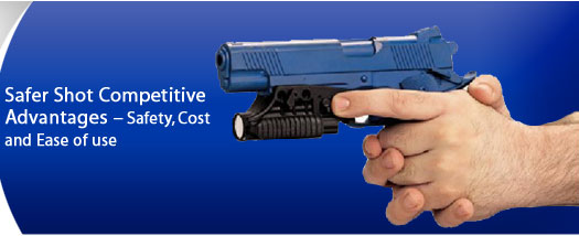 The Safer Shot Bouncer™ Cartridge System Uses kinetic energy to incapacitate a target at handgun range, up to 22 feet. The proprietary Safer Shot cartridge is a silicon coated spherical projectile; on impact the projectile breaks into a putty-like substance, preventing it from breaking the skin, entering the body or creating any long term injury to the assailant. At the same time, the effect of the cartridge is powerful, it causes extreme pain and immediate incapacitation, temporarily disabling an assailant, allowing them to be brought safely under control. Safer Shot Bouncer M-22™ Is lightweight and ambidextrous; the dual shot BouncerM-22™ gives the shooter the opportunity to fire, switch barrels and fire again almost instantaneously. Reloading between shots is not necessary. The BouncerM-22™ is designed to rest comfortably in the palm of your hand, where it can be directed intuitively like a flashlight. Cocking is done by pulling back the handle of the device and requires minimal hand pressure. Safer Shot Mini™ The single shot mini was designed for self-defense. It is lightweight, ambidextrous and easy to use. The Mini fits easily in your purse or pocket and requires no firearms training. Safer Shot Bouncer M-11™ Is a dual shot add on firing device designed for use with a handgun. The Bouncer M-11™ is mounted on a service weapon and allows police, security or military personnel to carry a single weapon capable of successfully responding to a non-lethal, escalating or lethal environment.