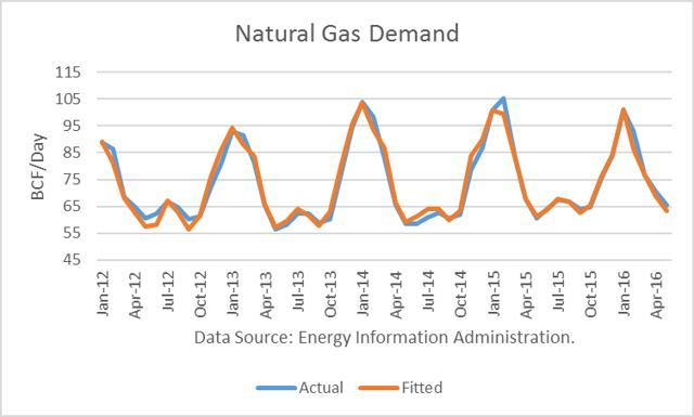 Natural Gas demand drops in January of all years in this graph from 2012 tru 2016 with a mild winter this year and graphically demand for natGaz drops in January of 2017