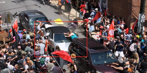 This picture shows that Fields could have steered left or right and hit a lot more people instead of hitting the car straight ahead of him.