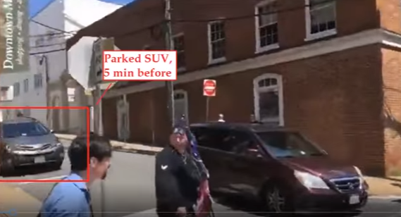The video shows the maroon van was "parked" at the intersection of 4th and Water for almost 5 minutes and there are no occupants in the front seat! It is stopped in the crosswalk.