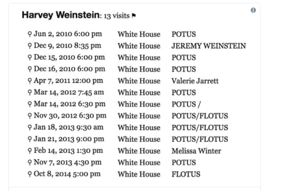 http://www.breitbart.com/big-government/2017/10/05/visitor-records-harvey-weinstein-visited-obama-white-house-13-times/
