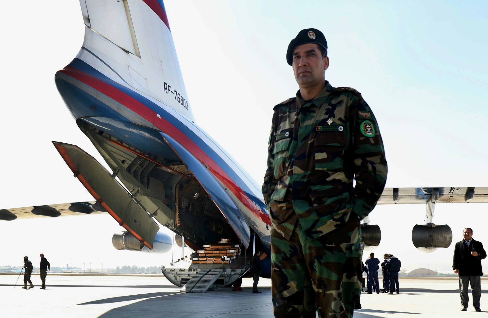 A Russian plane delivers 10,000 AK-47 rifles to the Afghan National Security Forces. Hedayatullah Amid/EPA
