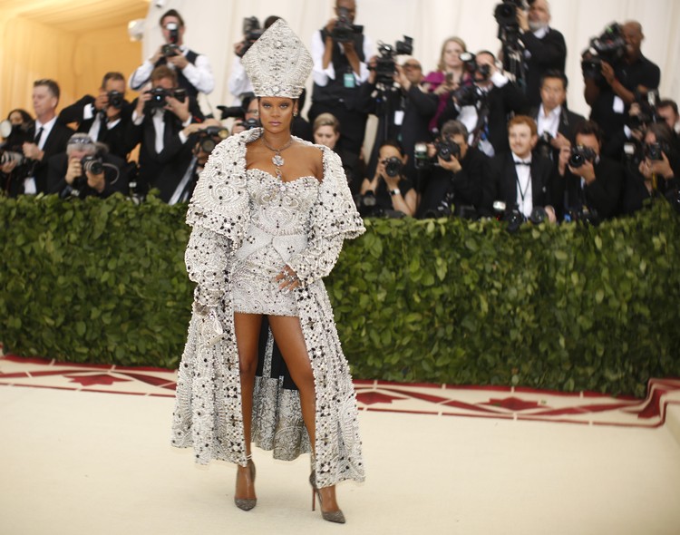 Rihanna shows off her pope-inspired ensemble at the Met Gala (Eduardo Munoz / Reuters)