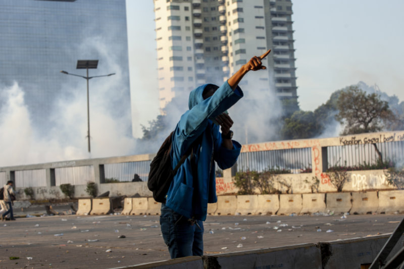 VIDEO - Protesters and Police Clash in Indonesia’s Capital By The Associated Press and Reuters Riot police fired tear gas and water cannons to disperse demonstrators in Jakarta, Indonesia, in the third day of a nationwide strike against a new law slashing worker and environmental protections. Ed Wray/Getty Images