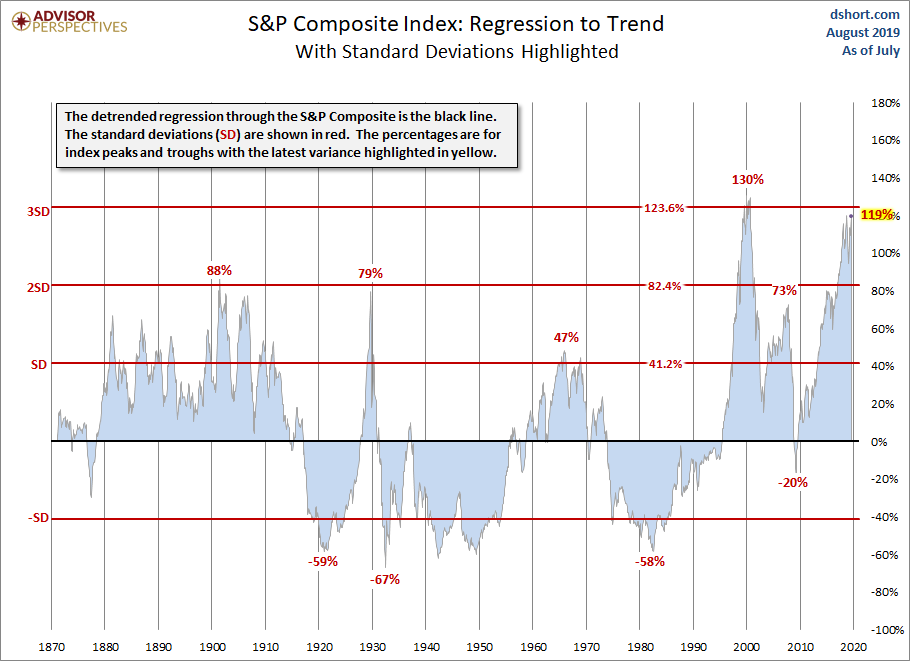 Regression to Trend: Another Look at Long-Term Market Performance By: Jill Mislinski | August 3, 2019