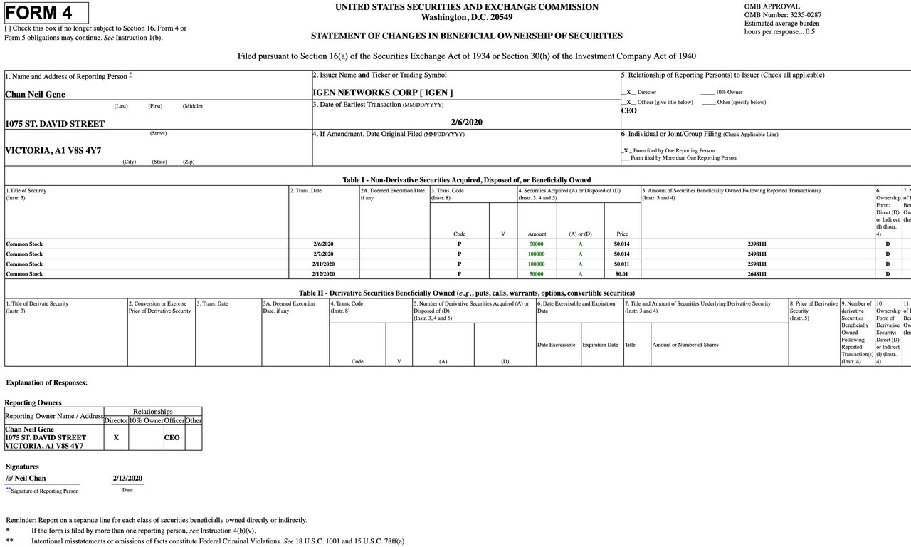 IGEN is a fully reporting company in both Canada and the United States. It is publicly traded on the OTCQB under the symbol IGEN, and listed on the CSE under the symbol IGN. For more information, please visit: www.igennetworks.net