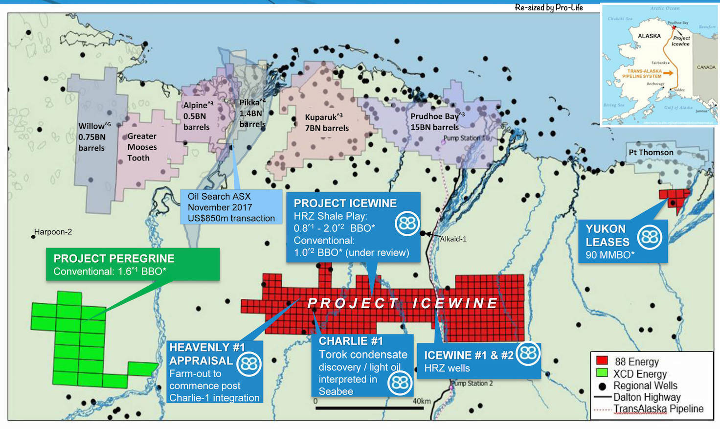 88 Energy holds more approximately 210,000 acres on the North Slope mostly around the edges of other industry activity. The company’s Icewine project is located south of Prudhoe Bay near the Dalton Highway in an area being worked by several other small explorers.