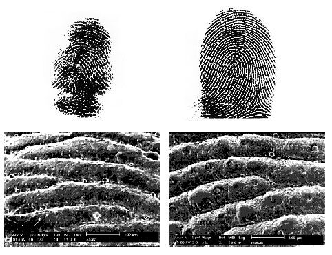 Koalas Have Human-like Fingerprints By Natalie Wolchover published May 04, 2011 [...] Scientists think the koala's fingertip features developed much more recently in its evolutionary history, because most of its close relatives (such as wombats and kangaroos) lack them. [...] Top row: Standard ink fingerprints of an adult male koala (left) and adult male human (right). Bottom row: Scanning electron microscope images of epidermis covering fingertips of the same koala (left) and the same human (right). (Image credit: Macie Hennenberg, et al. and naturalSCIENCE)