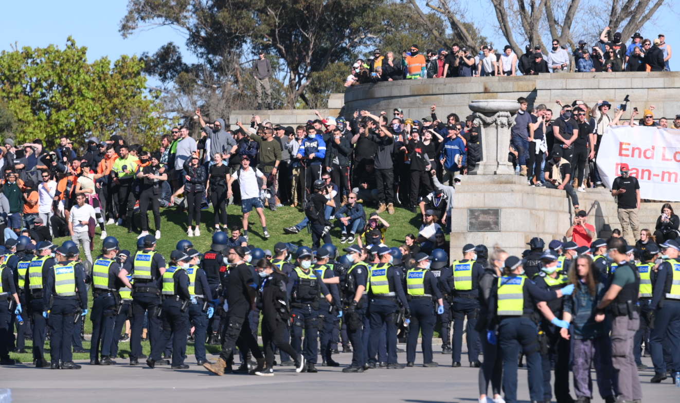 Last month there was a large anti-lockdown demonstration .. https://www.theage.com.au/link/follow-20170101-p58kp1 .. in Melbourne that involved hardcore, angry knuckleheads who wanted to go the knuckle and reasonable, angry people who wanted to be heard.
