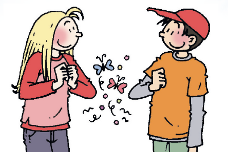 “I feel warm from the inside,” one boy replies. “It’s like there are little butterflies in my stomach.”
