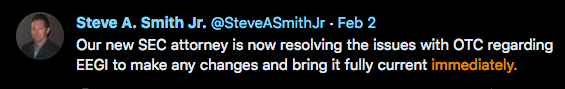 Reminds me of another ticker where the lying CEO kept promising to get current in 30 days and blaming OTC. That dragged on from 2021 to the middle of 2022. Then he gave up and abandoned the stock.