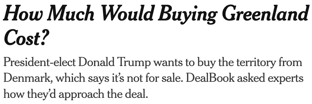 who even knew there were experts in the field of county-buying? but more importantly, why is the Times normalizing the ravings of a gibbering lunatic who imagines he can buy a country that isn’t for sale?