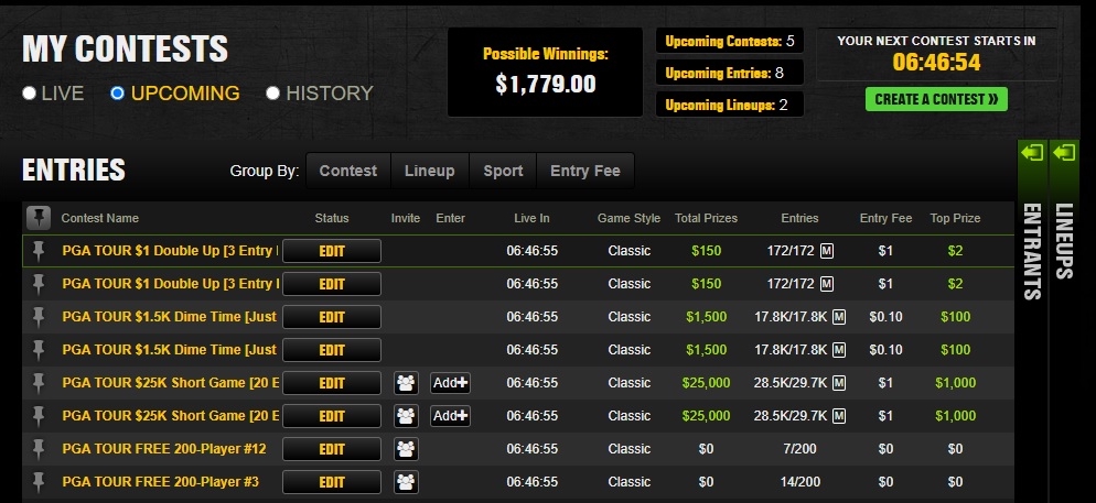 Here is what I am getting into this week - 8 contests, with a total of $4.20 outlay. I will likely be playing some showdowns later on, will let you know.