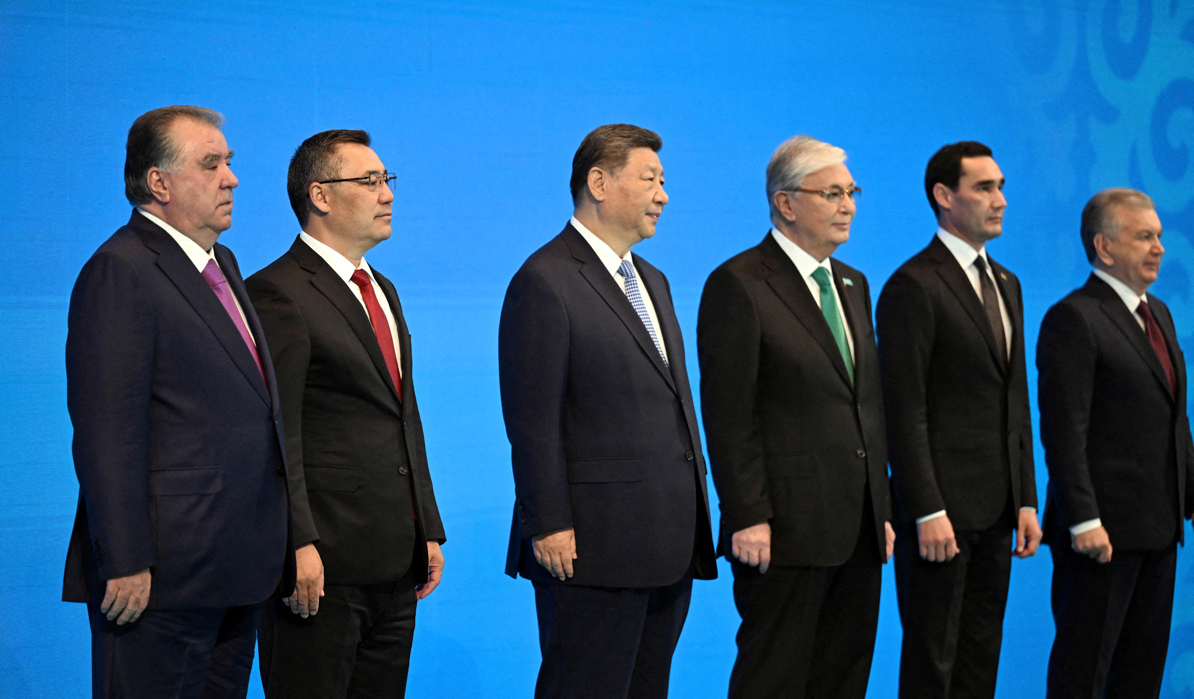Leaders of the five "stan" countries met with President Xi Jinping at the Central Asia Summit in Astana, Kazakhstan, on June 17. (Sultan Dosaliev/Kyrgyz Presidential Press Service/Handout via Reuters)