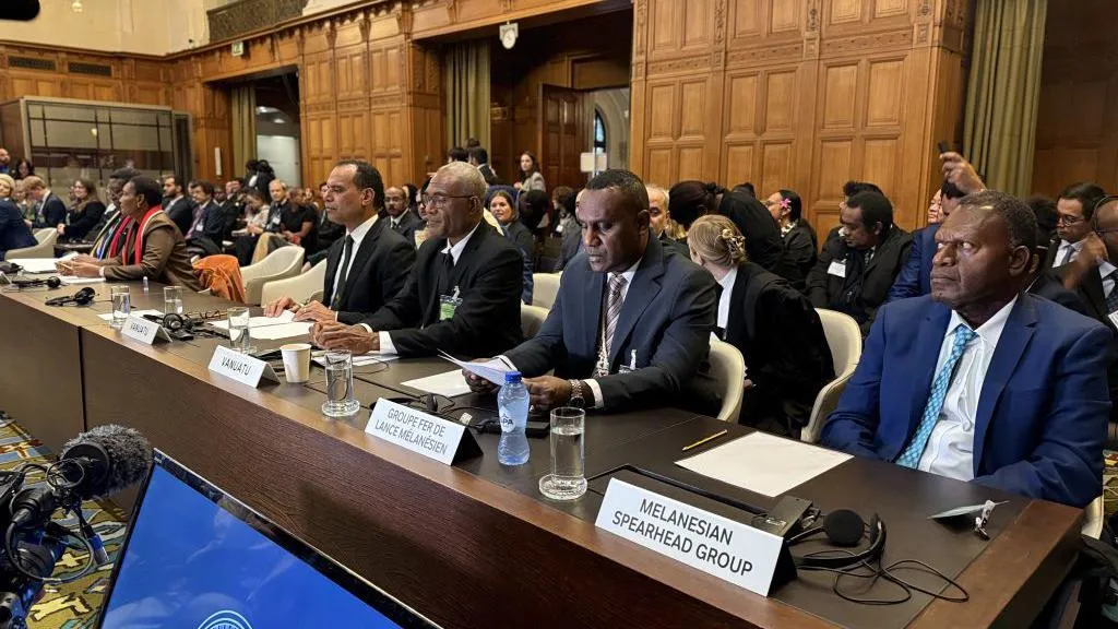 [Getty Images Ralph Regenvanu (4th R), Vanuatu's Special Envoy on Climate Change and the Environment, Arnold Kiel Loughman (3rd R), Attorney General of Vanuatu and Ilan Kiloe (2nd R), Legal Advisor to the Melanesian Vanguard Group, and Gregoire Nimbtik, Deputy Director General of the Melanesian Pioneer Group (R) attend the advisory opinion sessions at the International Court of Justice (ICJ) to determine states' obligations on climate in the Hague, Netherlands on December 2, 2024.] Representatives of Pacific Island nations gave evidence at the court Getty Images