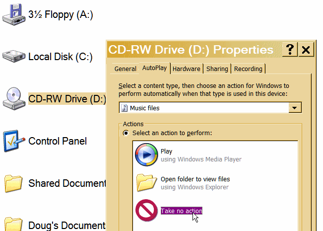 then did a "right mouse click" on CD-RW Drive(D:) with no CD inserted in it