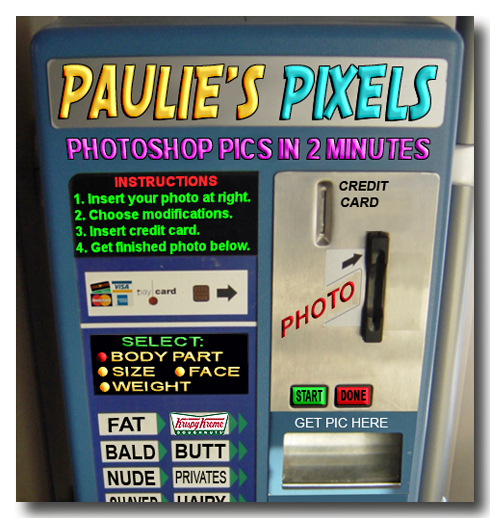 To find one of my Paulie's Pixels vending machines, I suggest you go down to the Food-Court, down by the Sears Mall.
