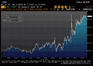 Yields were mixed across the Atlantic. France’s benchmark 5-Y bond ended flat at 1.65%. Germany’s 5-Yr bonds slipped slightly as its yield ended a basis point higher at 1.43%.